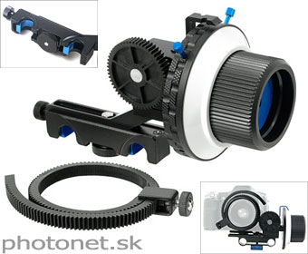 Profesionálny Follow Focus systém kompatibilný so štandardným 15mm koľajnicovým systémom. Rýchla montáž pomocou Quick-fix svorky. Možnosť vymedzenia rozsahu roviny zaostrenia. Ovládacie koliesko sa dá upevniť ľubovoľne z pravej alebo ľavej strany objektívu. Flexibilný pás s ozubením je vhodný pre objektívy s priemerom ostriaceho prstenca 52 až 86mm.Technické parametre:
