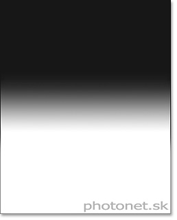 Prechodový šedý filter Formatt gradual 1,2 Soft s mäkkým prechodom.Tmavá časť filtra znižuje jas scény o 4 clony (ND16).