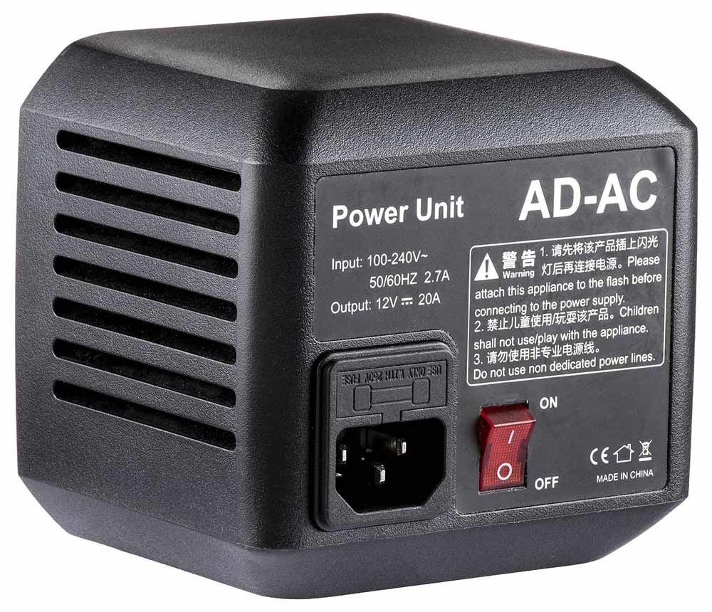 Napájací sieťový AC adaptér umožňuje napájať batériový blesk zo série Godox AD600 priamo z elektrickej siete.