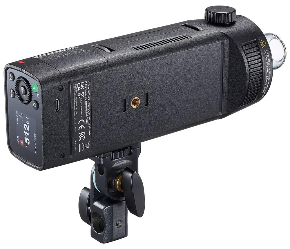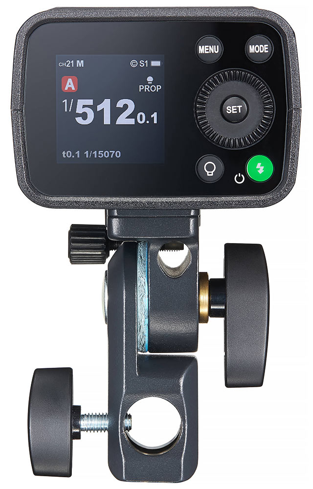 Pomocou priloženého kĺbového držiaka je možné blesk pripevniť na ľubovoľný štúdiový statív so spigotom. Kĺbový držiak je vybavený aj otvorom na upevnenie štúdiového dáždnika.