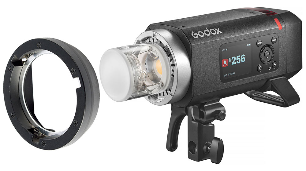 V prípade potreby je možné nasadiť dodaný prstencový adaptér s bajonetom typu Bowens a používať tak rôzne modifikátory svetla (softboxy, reflektory, komínky) vybavené najrozšírenejším typom uchytenia na svete.