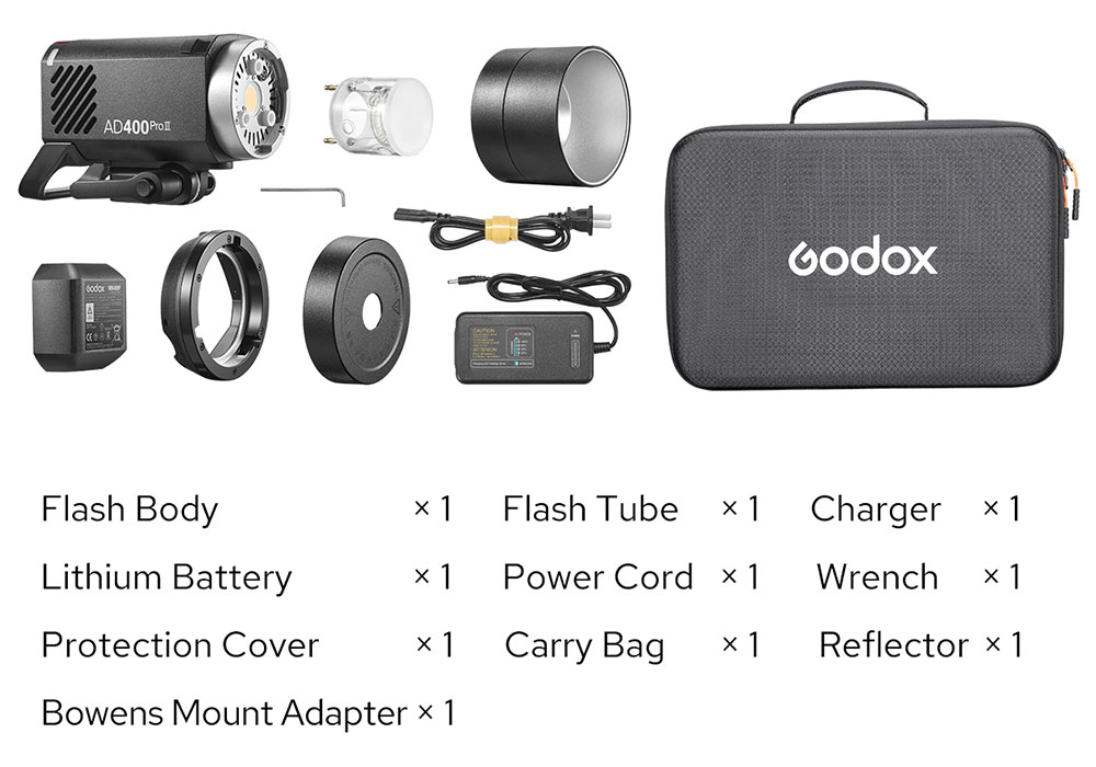Špecifikácia: Godox AD400Pro II TTL HSS batériový blesk 400Ws