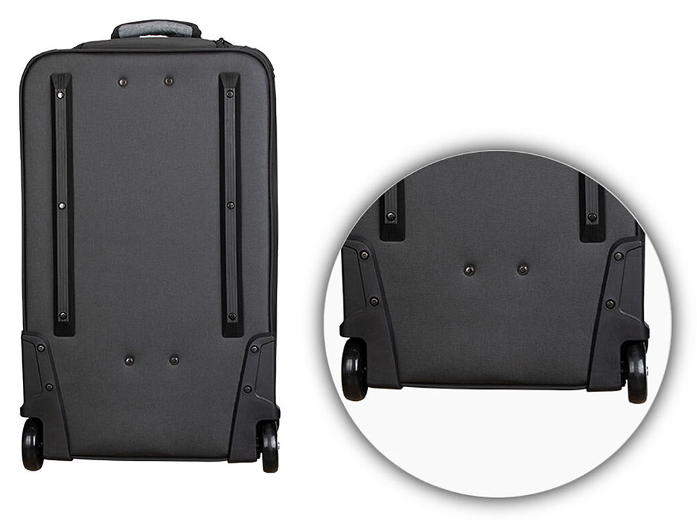 Kufor má uzatváranie na zips, hornú rukoväť a plastové nožičky, ktoré ho chránia pred poškodením.