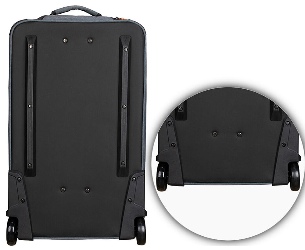 Kufor má uzatváranie na zips, hornú rukoväť a gumené nožičky, ktoré ho chránia pred poškodením.