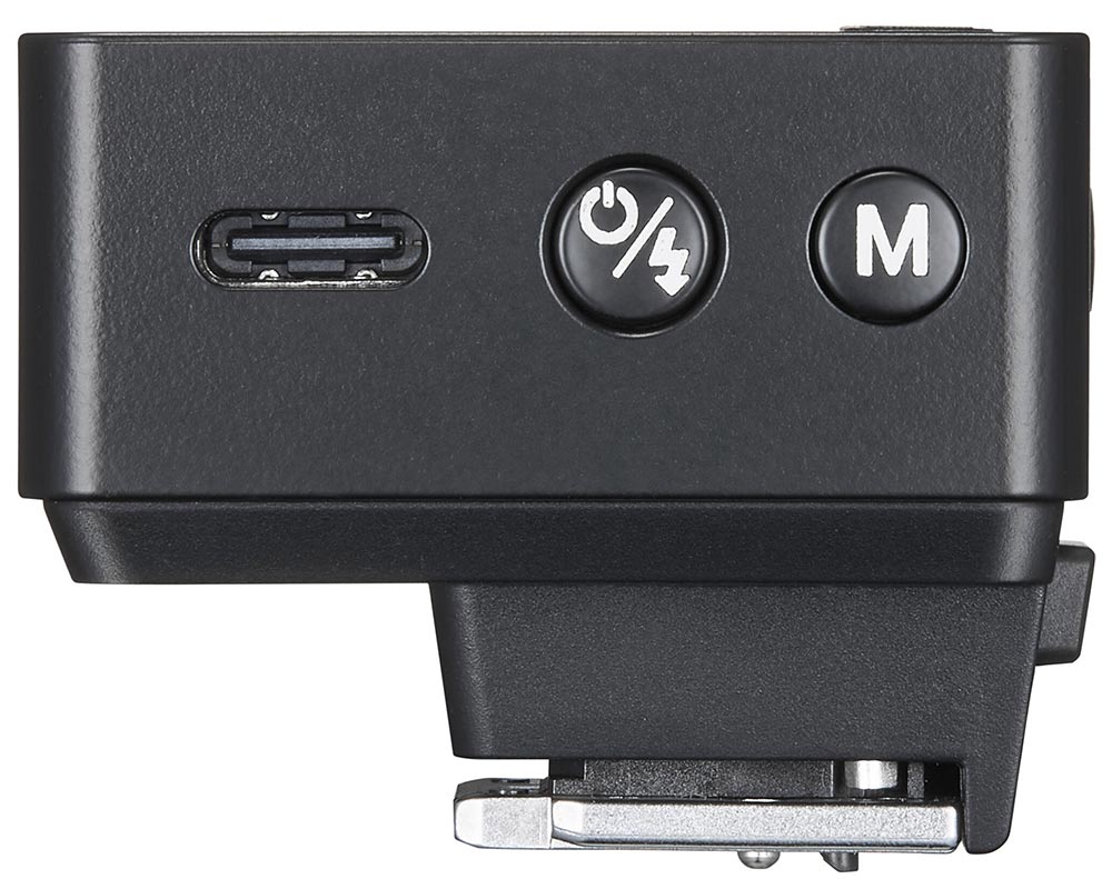 O napájanie sa stará vstavaná Li-ion batéria, nabíjanie prebieha cez USB-C port na tele blesku.