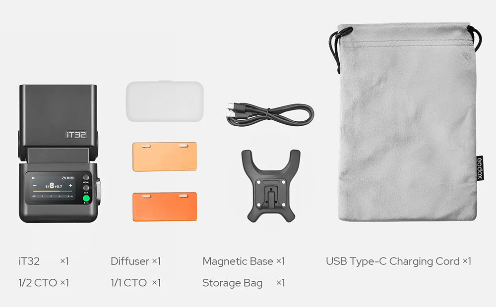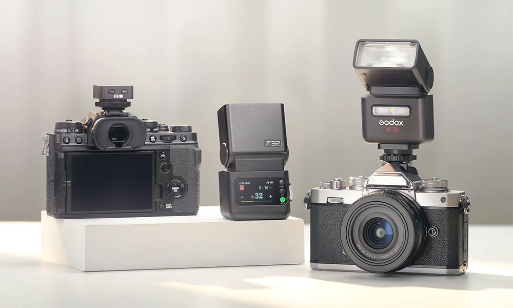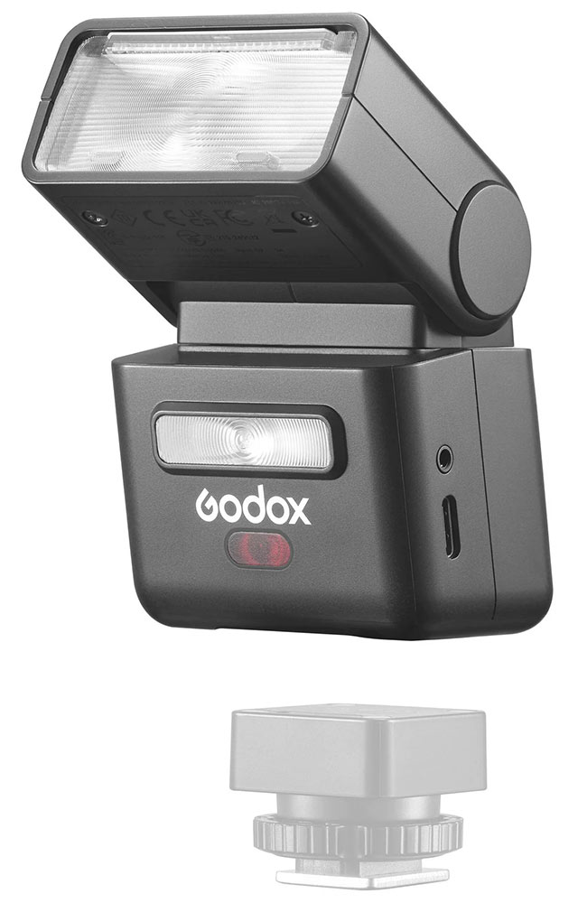 Malý prenosný blesk Godox iT32 je súčasťou modulárneho systému s výmennými hot-shoe päticami.