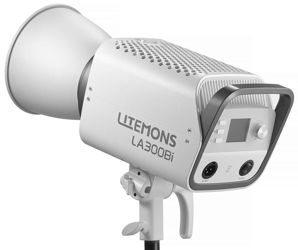 Napájanie - svetlo je napájané pomocou dodaného sieťového adaptéra. Alternatívne je možné napájanie pomocou V-mount batérií (vstup 48V), ktoré sú predávané samostatne.