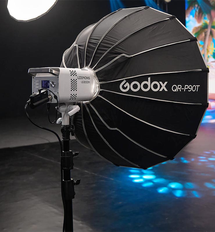 Bajonet štandardu Bowens - predná strana svetla je vybavená štandardným bajonetom typu Bowens. Je to najrozšírenejší typ uchytenia príslušenstva na svete. Vďaka jeho univerzálnosti je možné používať reflektory, softboxy, klapky, komínky a iné modifikátory svetla rôznych výrobcov, napr. Godox, Quadralite, Walimex, Photon, Fomei, Linkstar, Bowens a mnohých ďalších.