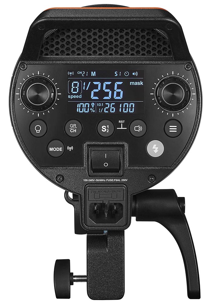 Predná strana blesku je vybavená štandardným bajonetom typu Bowens. Je to najrozšírenejší typ uchytenia príslušenstva na svete. Vďaka jeho univerzálnosti je možné používať reflektory, softboxy, klapky, komínky a iné modifikátory svetla rôznych výrobcov.
