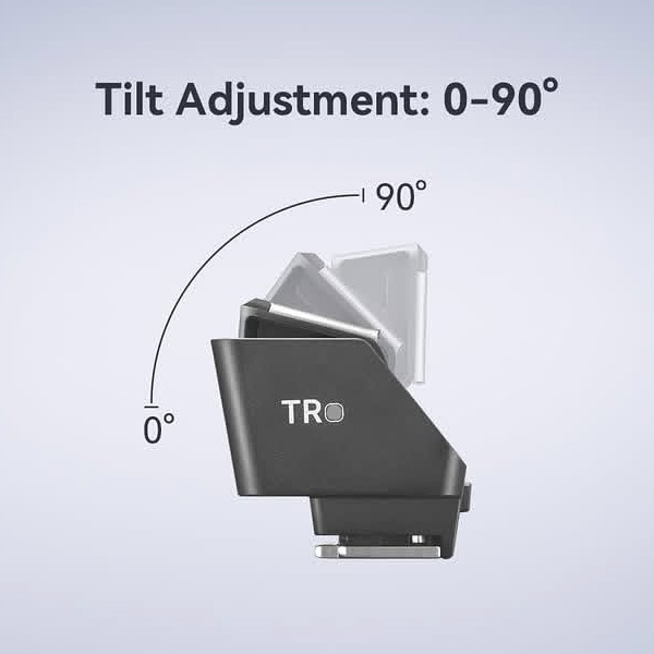 Po stlačení šípky v zadnej časti poskytuje možnosť náklonu v rozsahu 0 až 90°, čím poskytuje flexibilitu pri snímaní s priamym alebo odrazeným bleskom.