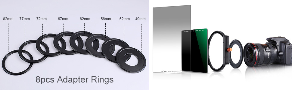 8x adaptačný krúžok (49 / 52 / 58 / 62 / 67 / 72 / 77 / 82 mm)