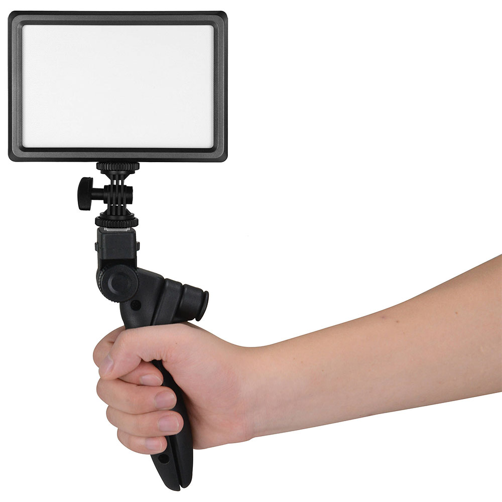 Po zložení má tvar rukoväte, čo umožňuje pohodlnú manipuláciu s technikou priamo z ruky.