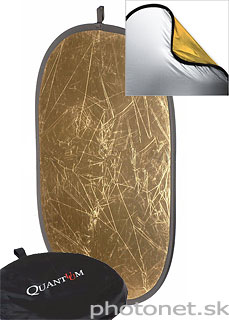 Skladacia odrazná doska Quantuum oválneho tvaru.Z jednej strany zlatá, z druhej strieborná odrazná plocha.