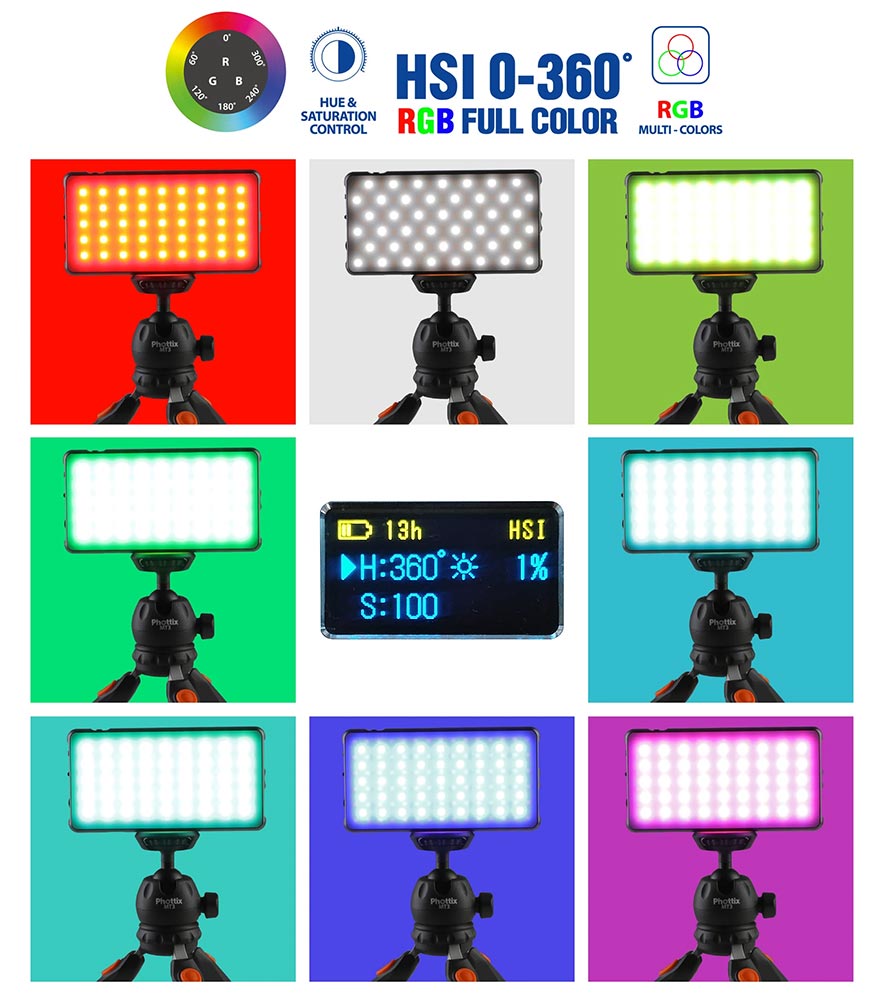 Malé, ľahké a prenosné LED RGB svetlo pre fotoaparáty, kamery a mobilné telefóny.