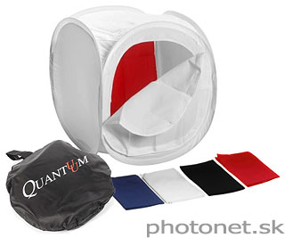 Svetelný fotostan Quantuum v tvare kocky.Nevyhnutná pomôcka pre dosiahnutie rozptýleného svetla v produktovej fotografii.