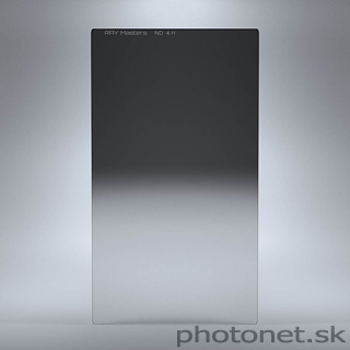 Kvalitný prechodový filter Ray Masters ND4 Hard s tvrdým prechodom.Tmavá časť filtra znižuje jas scény o 2 stupne (-2EV, ND4, ND 0.6).