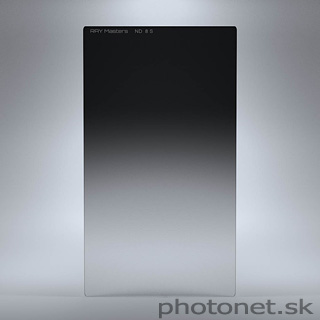 Kvalitný prechodový filter Ray Masters ND8 Soft s mäkkým prechodom.Tmavá časť filtra znižuje jas scény o 3 stupne (-3EV, ND8, ND 0.9).