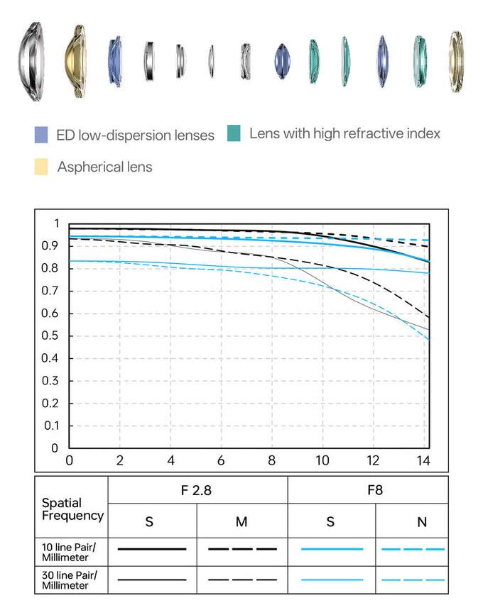 | Optická konštrukcia | 13 členov / 11 skupín |