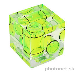 Univerzálna vodováha v tvare kocky umožňuje kontrolu horizontálnej, aj vertikálnej polohy fotoaparátu.Vybavená je tromi samostatnými libelami.